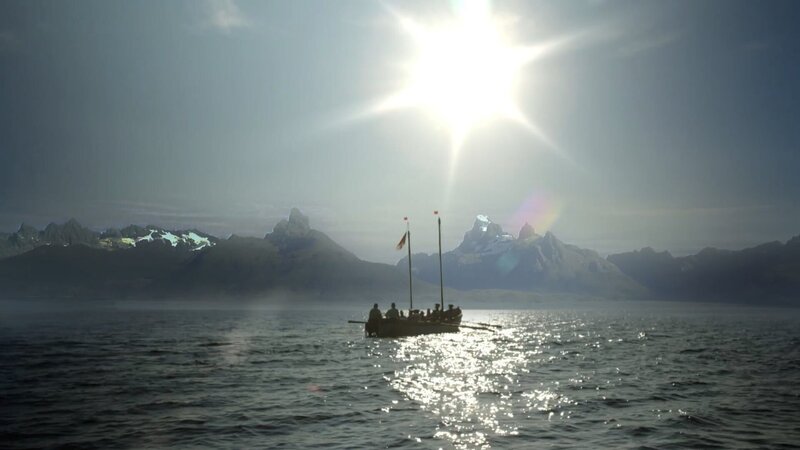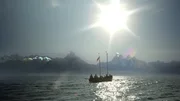 Feuerlandindianer entdecken die "HMS Beagle" auf ihrem Stammesterritorium.Bild: © ZDF/Jürgen Stumpfhaus