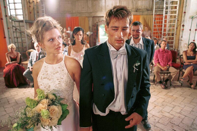 Erst vor dem Traualtar erkennt Mark (Jan Sosniok, r.), dass seine Minderwertigkeitsgefühle keine Basis für eine Ehe mit Lara (Doreen Jacobi, l.) bilden. Voller Panik flüchtet er aus der Kirche ...
