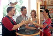 Ihre Freunde Nicole (Rita Lengyel, r.) und Mario (Alexander Hörbe, l.) sind fest davon überzeugt, dass Lara (Doreen Jacobi, 2.v.r.) und Marc (Jan Sosniok, 2.v.l.) zusammengehören. Doch dann meldet sich wieder Marks altbekanntes Problem ...