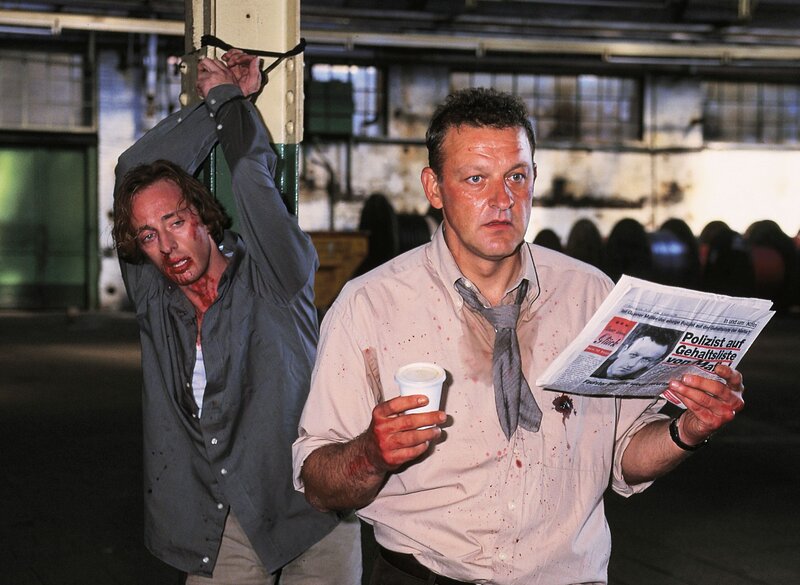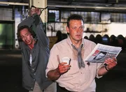 Kriminalkommissar Gunner Müller (Leonard Lansink, re.) und Edgar Fürst haben Peter (Wilfried Hochholdinger) in ihre Gewalt gebracht, um Karin zum Aufgeben zu zwingen ...Bild: © RTLplus / Frank Hempel