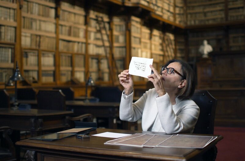 Die italienische Archivexpertin Orietta Verdi widmet sie sich einem rätselhaften Beweisstück, das sie schlicht „das kleine Papier“ getauft hat. Es soll helfen, den Weg des Gemäldes „Maria Magdalena in Ekstase“ nachzuvollziehen.Bild: © Iliade Productions