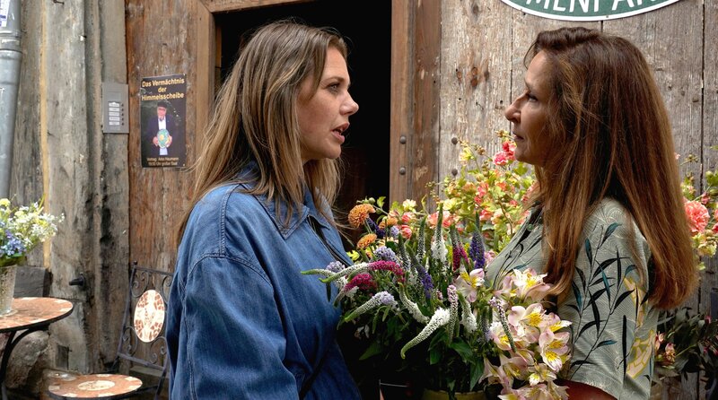 Blumenhändlerin Agnes (Barbara Philipp, re.) öffnet Kim (Felicitas Woll, li.) das Tor zur Vergangenheit.Bild: © ARD Degeto Film/MadeFor Film GmbH/Hans-Joachim Pfeiffer