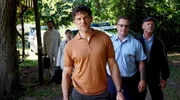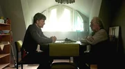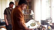 Kommissar Ritter (Torben Liebrecht, re.) befragt den Sohn des Verstorbenen Jonny (Florian Bartholomäi, li.) zum Fund der Himmelsscheibe von Nebra.Bild: © ARD Degeto Film/MadeFor Film GmbH/Hans-Joachim Pfeiffer