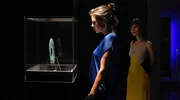 Ein tödlicher Fluch? Die Hamburger Fotografin Kim Wenrich (Felicitas Woll, li.) und Museumsleiterin Rebecca Rosen (Neda Rahmanian, re.) vor der Himmelsscheibe von Nebra.Bild: © ARD Degeto Film/MadeFor Film GmbH/Hans-Joachim Pfeiffer