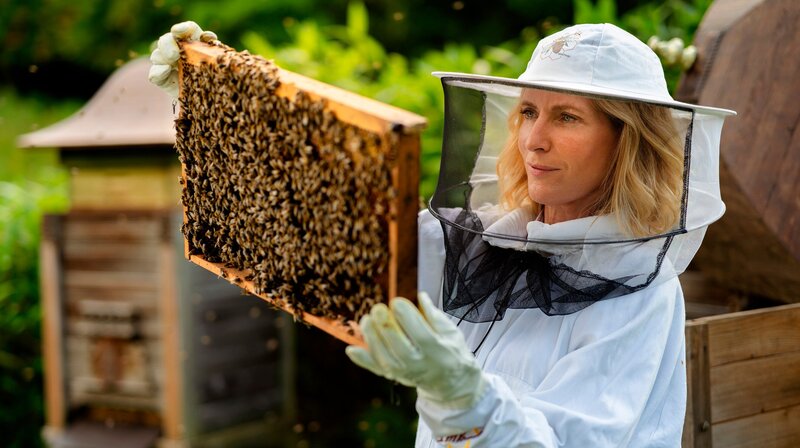 Für mich ist der Rückgang der Insektenvielfalt das weltweit besorgniserregendste Problem, dem wir uns stellen müssen": Dr. Bodil Cass, Insektenforscherin aus Kalifornien. "Tatort"-Star Maria Furtwängler war schon immer ein glühender Insektenfan. Als Kind verbrachte sie ihre Sommer regelmäßig an den Seen Bayerns, rettete ertrinkende Bienen aus dem Wasser und baute ihnen kleine Krankenhäuser aus Blättern, um sie wiederzubeleben. Die Leidenschaft für die unscheinbaren Krabbeltiere ließ sie seither nicht mehr los. Heute besitzt die Hobby-Imkerin eine Reihe von Bienenstöcken, die sie das ganze Jahr über versorgt. "Durch das Imkern habe ich gelernt, welche Blüten Honigbienen am liebsten anfliegen und was Wildbienen oder Schmetterlinge besonders anzieht. Obwohl ich meinen Garten immer mehr danach ausgerichtet habe, ist auch hier offensichtlich, wie es Jahr um Jahr immer weniger Hummeln und Schwebfliegen gibt." Die Zahlen sind alarmierend: Von fast 600 Wildbienenarten in Deutschland ist die Hälfte in Gefahr, mindestens 60 einheimische Schmetterlingsarten sind bereits verschwunden und ein Drittel der Schwebfliegenarten Europas schwebt am Rande des Aussterbens. Insgesamt gelten 42 Prozent der heimischen Insektenarten als gefährdet, extrem selten oder bereits ausgestorben. Insekten sind die unscheinbaren Helden des Planeten. Sie bestäuben Nutzpflanzen, recyceln Abfälle und dienen als Nahrungsquelle für unzählige andere Tiere. Damit sind sie auch unverzichtbar für den Menschen. Doch in den letzten Jahrzehnten hat sich ihre Zahl dramatisch verringert. Warum? Das möchte Maria Furtwängler auf ihrer Spurensuche herausfinden. Dafür trifft sie Menschen aus Forschung und Agrarindustrie, Hersteller von Pflanzen- und Insektenschutzmitteln, ökologisch und konventionell arbeitende Landwirte vom Alten Land in Norddeutschland bis zur Schwäbischen Alb. In den USA wiederum ist alles XXL: die Größe der Felder, die damit einhergehenden Probleme, aber auch die Kreativität mit Hightechlösungen im von Robotern und Computern gesteuerten Pflanzenanbau. Kenntnisreich begibt sich die studierte Medizinerin Furtwängler als Anwältin der Insekten für "Erlebnis Erde" auf eine aufrüttelnde Reise: "Was mich bei den Dreharbeiten am allermeisten berührt hat, ist, wie viele der Wissenschaftlerinnen und Experten von einem drohenden Kollaps der weltweiten Insektenpopulation sprechen. In dieser Deutlichkeit habe ich das vorher noch nicht gehört und mir auch nicht vorstellen wollen.