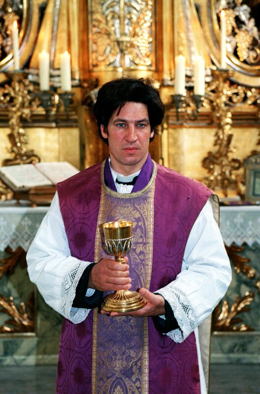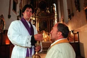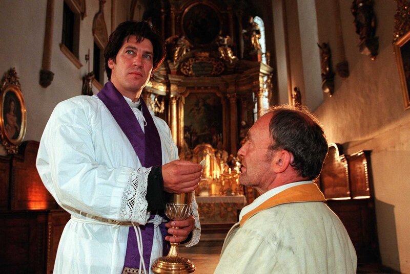 Bei seinem Amtsantritt steht nur der Mesner Alois Hauser (Johann Thanheiser, rechts) dem neuen Hilfspfarrer Mohr (Tobias Moretti, links) zur Seite.Bild: © SWR