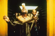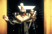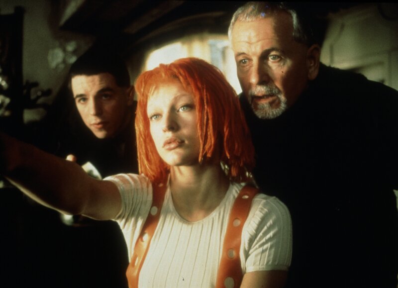 Augenblicklich erkennt der Priester Cornelius (Ian Holm, r.) in dem geheimnisvollen Mädchen Leeloo (Milla Jovovich, M.) die Trägerin des fünften Elements ...