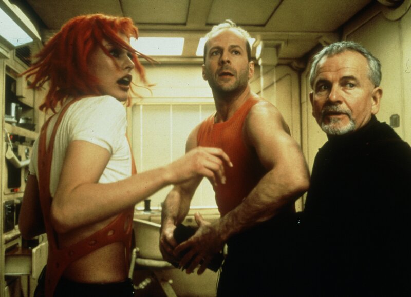 New York, im 23. Jahrhundert. Der degradierte Elitesoldat Korben Dallas (Bruce Willis) kämpft sich als Chauffeur eines fliegenden Taxis durch den dichten Verkehr. Trotz seiner Scheidung träumt der unverbesserliche Romantiker noch immer von der großen Liebe. In diesem Moment kracht die schöne Leeloo (Milla Jovovich) durch sein Autodach und landet auf dem Rücksitz. Die grazile Frau wurde in einem militärischen Labor geklont, aus dem sie ausbrechen konnte. Nicht ahnend, worauf er sich einlässt, rettet Korben seine neue Freundin vor Polizei und Armee. Von dem Priester Vito Cornelius (Ian Holm) erfährt er, dass Leeloo ein höheres Wesen ist, dazu auserkoren, die Welt vor dem unmittelbar bevorstehenden Angriff einer außerirdischen Macht zu beschützen. Dazu muss die schöne Rothaarige zunächst in den Besitz von vier magischen Steinen gelangen, den vier Elementen, die von der Opernsängerin Diva Plavalaguna (Maiwenn Le Besco) auf einem fernen Ferienplaneten aufbewahrt werden. Da die Steine eine mächtige Waffe darstellen, ist auch der Schurke Zorg (Gary Oldman) hinter ihnen her. Mit Hilfe des exzentrischen TV-Moderators Ruby Rhod (Chris Tucker) bringt Korben die vier Elemente im letzten Moment auf die Erde zurück. Doch wie soll mit ihnen nun die Waffe aktiviert werden, welche die außerirdischen Angreifer abwehrt? Korben muss das Geheimnis des fünften Elements enträtseln, das Leeloo selbst verkörpert. Make Love, not War: In Luc Bessons überdrehtem Science-Fiction-Märchen für Erwachsene rettet Bruce Willis auf französische Art die Welt. Seinen Charme bezieht das Action-Spektakel unter anderem aus der Kreativität des französischen Modeschöpfers Jean-Paul Gaultier, der die Kostüme und Accessoires entwarf. Und nicht zufällig erinnert das Kreuzfahrtschiff auf dem Urlaubsplaneten an die französischen Ferienresorts des 'Club Med'. Gegen diesen heiteren Blick in die Zukunft, in dem Besson ganz nebenbei den ersten afroamerikanischen Präsidenten vorwegnimmt, wirken "Star Wars" und "Star Trek" harmlos wie das Sandmännchen. Im 23. Jahrhundert droht die Zerstörung der Welt durch Außerirdische. Nur mit einer prähistorischen Strahlenwaffe können die Menschen die Katastrophe noch abwenden. Dazu müssen vier Kultsteine, die für die Elemente Feuer, Erde, Wasser und Luft stehen, in einen ägyptischen Tempel gebracht werden. Die Superwaffe funktioniert aber nur mit Hilfe des "fünften Elements", verkörpert von einer geklonten Frau. Da diese recht launisch ist, hängt das Schicksal der Welt von einem New Yorker Taxifahrer ab, der ihr Herz erobern muss. - Mit dieser Science-Fiction-Komödie gelang Regisseur Luc Besson ein europäischer Blockbuster.