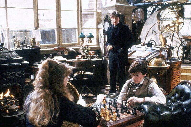 Im Internat Brompton lernt der junge John Watson (Alan Cox, re.) Sherlock Holmes (Nicholas Rowe, Mi.) und Elizabeth (Sophie Ward, li.) kennen und freundet sich schon bald mit ihnen an.Bild: © ARTE France / Paramount Pictures