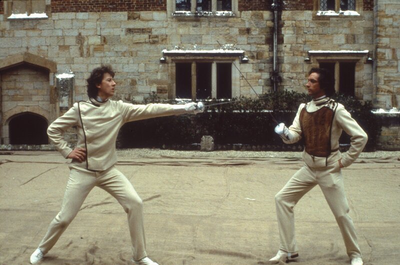 Der junge Sherlock Holmes (Nicholas Rowe, li.) übt sich im Fechten mit seinem Mentor Professor Rathe (Anthony Higgins, re.).Bild: © Paramount Pictures Corporation