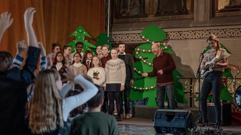 Franz (Simon Schwarz) singend, und Julie (Lucy Gartner, rechts).Bild: © ORF/Allegro Film/Stefanie Leo