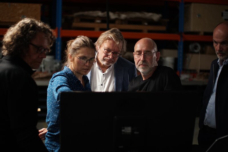 9000 Jahre nach ihrem Tod versucht ein Forscherteam herauszufinden, wie die Schamanin von Bad Dürrenberg gestorben ist. Im Bild von links: Die Archäologen Jörg Orschiedt, Franziska Knoll, Harald Meller, Andreas Siegl und der Autor Kai MichelBild: © Eike Wichmann / ZDF