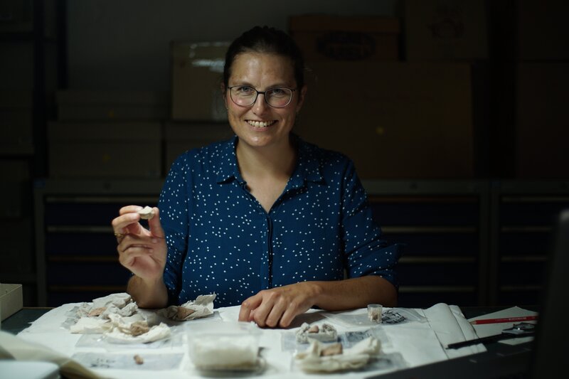 Die Paläontologin Franziska Knoll entdeckte eine weitere Besonderheit des Grabes der Schamanin von Bad Dürrenberg: Der Korb, in den ihre Gemeinschaft die Schamanin zur letzten Ruhe legte, war mit einer Kalkschicht verputzt. Diese Entdeckung ist deshalb so spektakulär, weil bisher angenommen wurde, dass die Menschen der Mittelsteinzeit nur in Zelten mit Fellbespannung lebten. Die Kunst des Verputzens ordnete man erst viel später den ersten Hausbauern zu.Bild: © Tom Nicklaus / ZDF