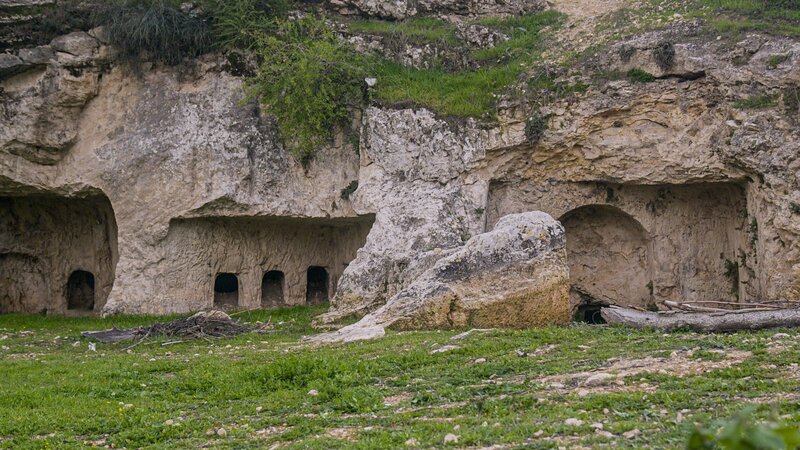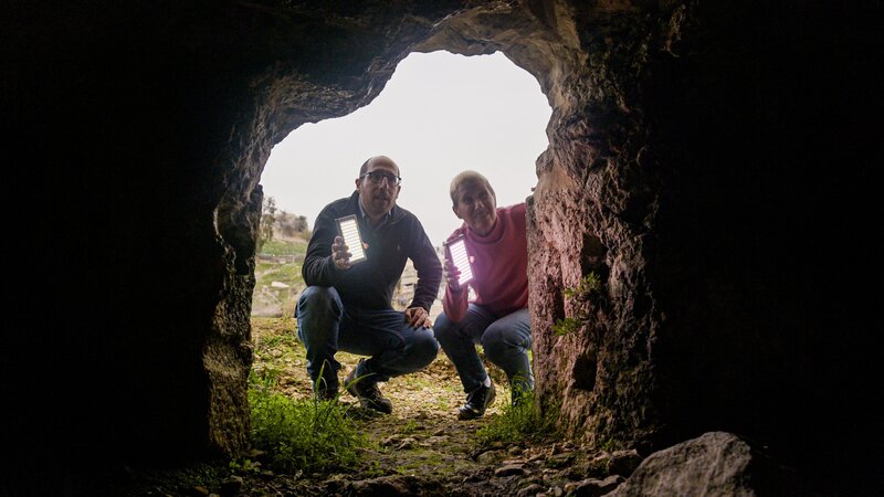 Der israelische Archäologe Yosef Spiezer zeigt der amerikanischen Archäologin Jodi Magness Höhlengräber, die bei Hinnom Valley in der Nähe der Altstadt Jerusalems gefunden wurden.