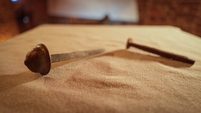 Bei Kreuzigungen wurden Nägel verwendet, die zu starken Blutungen führten. Diese Rückstände soll man am Grabtuch von Turin erkennen. Weiteres Bildmaterial finden Sie unter www.br-foto.de.