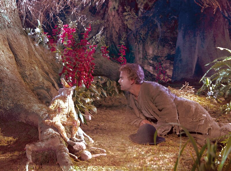Der Koehlerbursche Peter (Lutz Moik) hat die Hilfe des guten Glasmaennlein verspielt. Nun muss er sich in seiner Not an den boesen Hollaender-Michel (Erwin Geschonneck) wenden. Aber der boese Riese will Peters Herz dafuer.Bild: © rbb