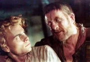 Der arme Peter (Lutz Moik,l.) ist Köhler und bettelarm. Der Gute Geist des Waldes vehilft ihm zu großem Reichtum, doch damit kann Peter nicht umgehen. Er verbringt die meiste Zeit im Wirtshaus und wird wieder ein armer Mann. Der böse Geist "Michel" (Erwin Geschonneck.re.) verspricht ihn wieder reich zu machen. Doch er verlangt etwas Grausames: Peter muß sein Herz gegen ein Herz aus Stein tauschen...Bild: © rbb/WDR/DEFA