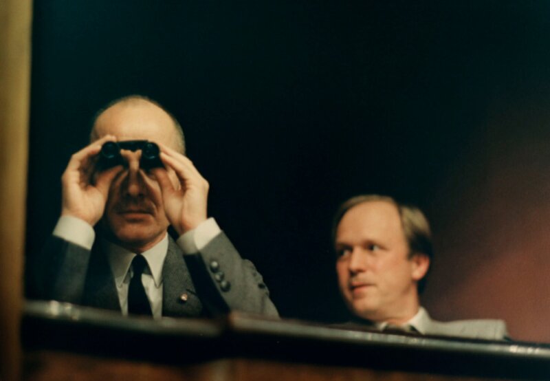 Oberstleutnant Anton Grubitz (Ulrich Tukur, rechts) nimmt Stasi-Hauptmann Gerd Wiesler (Ulrich Mühe) mit zu einer Theaterpremiere.Bild: © BR/Wiedemann & Berg