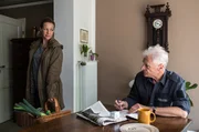 Hannes (Max von Pufendorf, l.) teilt Paul (Matthias Buss, r.) mit, dass er nicht mehr bei ihm auf dem Hof vorbeikommen solle, da seine Freundin Helen das nicht möchte.Bild: © ZDF/Marion von der Mehden