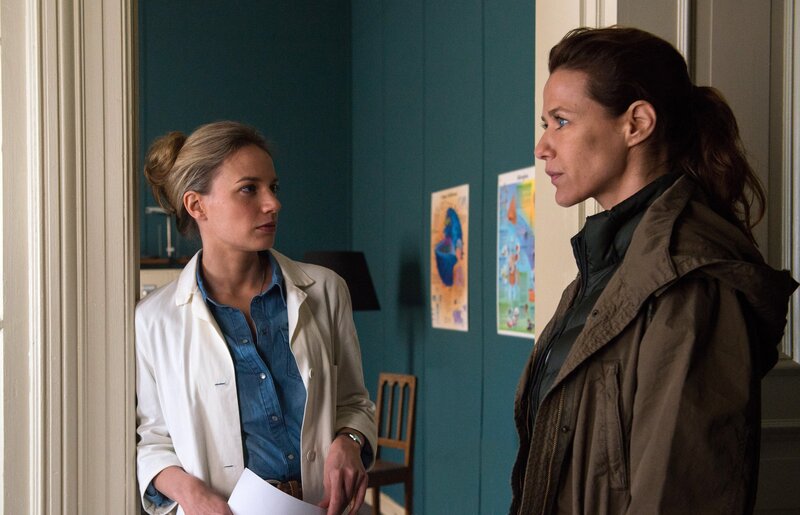 Jutta (Alexandra Neldel, r.) trifft in der Praxis von Dr. Lohse auf Hannes neue Freundin Helen (Jytte-Merle Böhrnsen, l).Bild: © ZDF/Marion von der Mehden