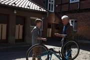 Kommissar Keller (Robert Atzorn, r.) repariert zusammen mit seinem Enkel Jonas (Noah Kraus, l.) dessen Fahrrad.Bild: © Marion von der Mehden
