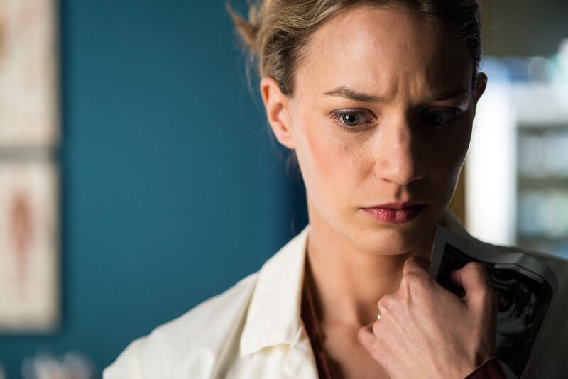 Helen (Jytte-Merle Böhrnsen) findet beim Aufräumen in Dr. Lohses Büro zufällig das Ultraschallbild von Fee. Ihr wird sofort klar, dass Hannes der Vater gewesen sein muss.Bild: © ZDF/Marion von der Mehden