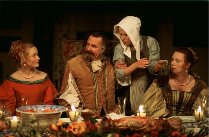 L-R: Catharina (Essie Davis), Van Ruijven (Tom Wilkinson), Griet (Scarlett Johansson), Tanneke (Joanna Scanlan)Bild: © Turner