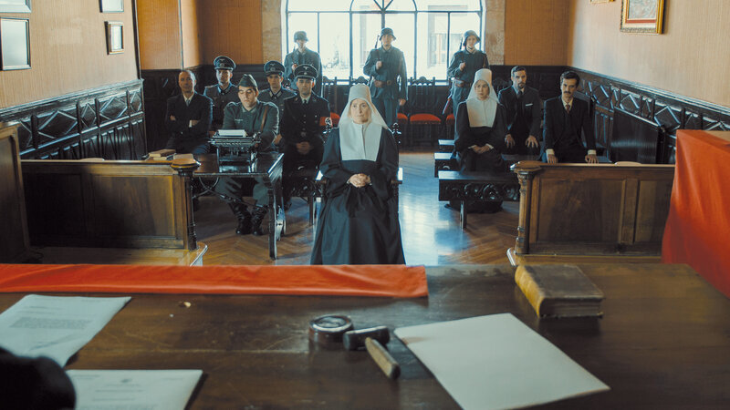 Schwester Helena (Assumpta Serna, M.) wird vor einem deutschen Gericht angeklagt. Verwendung nur in Verbindung mit Programmkommunikation. Jede andere Nutzung ist untersagt.Bild: © Bibel TV