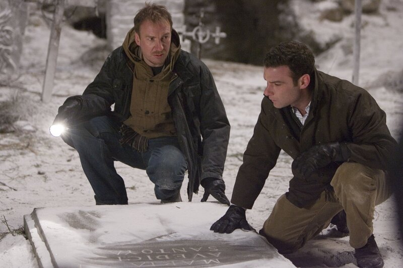Auf der Suche nach Hinweisen zur Vergangenheit seines mysteriösen Adoptivsohnes, begeben sich Robert Thorn (Liev Schreiber, r.) und Keith Jennings (David Thewlis, l.) zu einem einsamen Friedhof und machen eine unheilvolle Entdeckung.