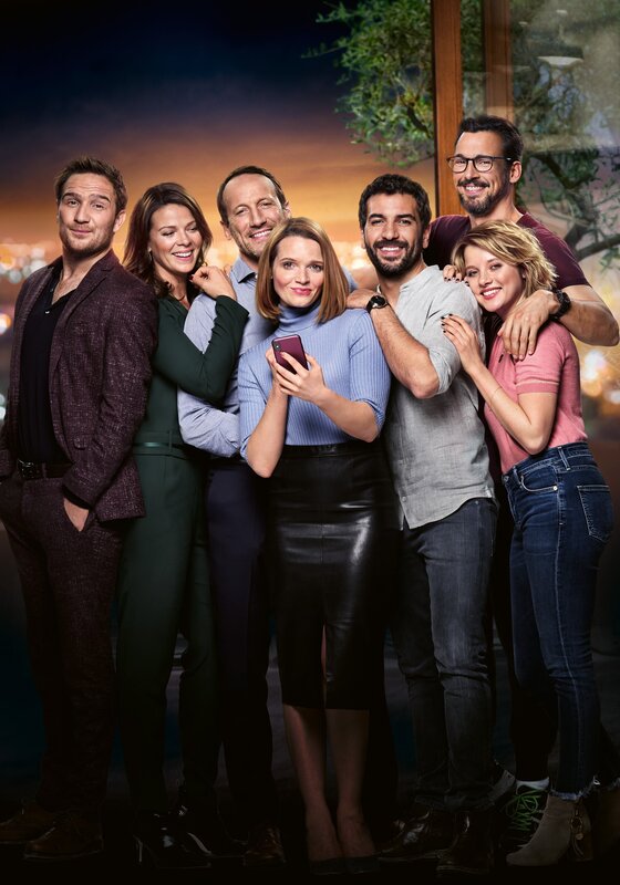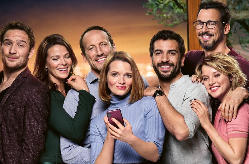 L-R: Bianca (Jella Haase), Simon (Frederik Lau), Pepe (Florian David Fitz), Leo (Elyas M'Barek), Eva (Jessica Schwarz), Rocco (Wotan Wilke Möhring), Carlotta (Karoline Herfurth).Bild: © ORF/Pro7/Constantin Film/Lucia Faraig