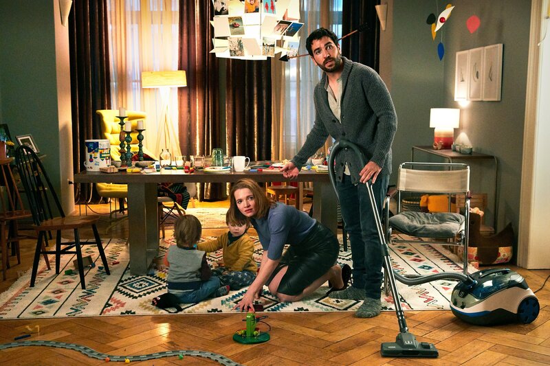 Familienleben mit Staubsauger: Carlotta (Karoline Herfurth, 2.v.r.), Leo Keschwari (Elyas M'Barek, r.)Bild: © ORF/Pro7/Constantin Film/Lucia Faraig
