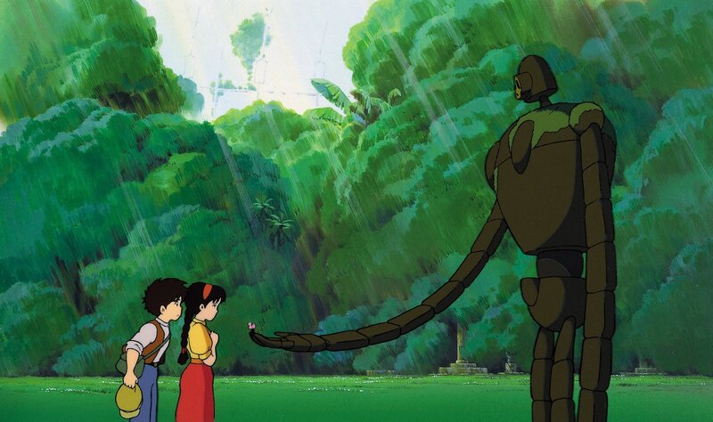 Sheeta ist ein Waisenmädchen und eine Gefangene des bösen Regierungsagenten Musca. Als der sie eines Tages auf eine Fahrt in seinem Luftschiff mitnimmt, werden sie von Piraten angegriffen. Das Schiff gerät ins Wanken und Sheeta fällt hinaus. Mitten in die Arme des Bergarbeiterjungen Pazu. Dass Sheeta nicht mit voller Wucht auf die Erde aufgestoßen ist, verdankt sie ihrem Amulett. Es ist ein sagenumwobener Kristall, der aus Laputa, dem Königreich über den Wolken, stammen soll. Wer den Kristall hat, so heißt es, wird den Weg ins Schloss finden, in dem unsagbare Reichtümer versammelt sind. Wer in ihren Besitz gelangt, kann Herrscher über die Erde werden. Eine verlockende Aussicht für viele, allen voran dem üblen Schurken Musca. Jetzt, da Sheeta nicht mehr seine Gefangene ist, setzt er alles daran, dass Mädchen samt dem Kristall zu finden. Auch die Himmelspiraten sind hinter dem Stein her. Und so beginnt eine große Jagd auf das Mädchen. Pazu, der schnell begreift, welchen Schatz Sheeta bei sich trägt, will ebenfalls nach Laputa. Nicht etwa, weil ihn die Reichtümer locken. Pazu vermutet, dass sich sein verschollener Vater im Schloss befindet. Gemeinsam machen sich die Kinder auf den Weg und müssen zahlreiche Hindernisse überwinden. Doch die Kraft ihrer Freundschaft macht sie ungemein stark.