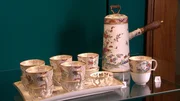 Ein Schokoladenservice im Museum der Staatlichen Porzellanmanufaktur Meißen. Im 18. Jahrhundert genoss der Adel die sündhaft teure Trinkschokolade aus solchen speziellen Zittertassen. Der hoch gezogene Einstellring der Untertasse sollte ein Umkippen der Tasse und das Verschütten des Morgentrunks verhindern.Bild: © MDR / MDR/HA Kommunikation