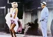 Die Hundstage nahen und Richard schickt Ehefrau und Sohn aufs Land, während er selbst in Manhattan zurückbleibt. Fest entschlossen, die sturmfreie Bude nicht für Trinkgelage und Liebeleien zu nutzen, wird er auf eine harte Probe gestellt, als eine sinnliche Blondine gegenüber einzieht. Bild: Das Mädchen (Marilyn Monroe) und Richard Sherman (Tom Ewell).