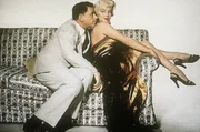Heisser Sommer: Als Richard Shermans (Tom Ewell, unten) Frau und Kind im Urlaub sind lernt er seine attraktive Nachbarin (Marilyn Monroe, oben) näher kennen ...
