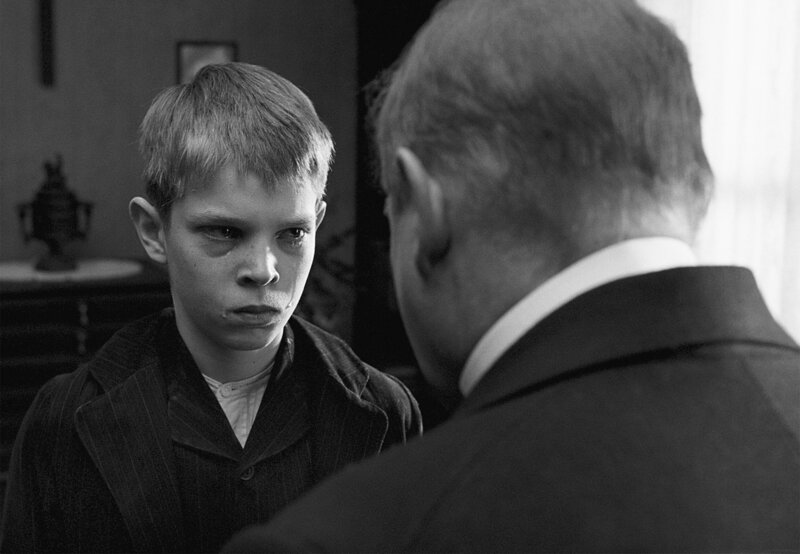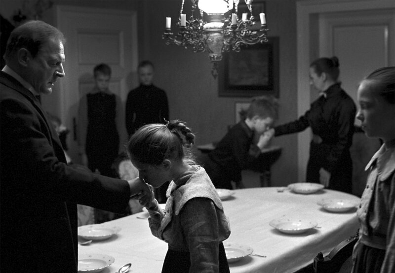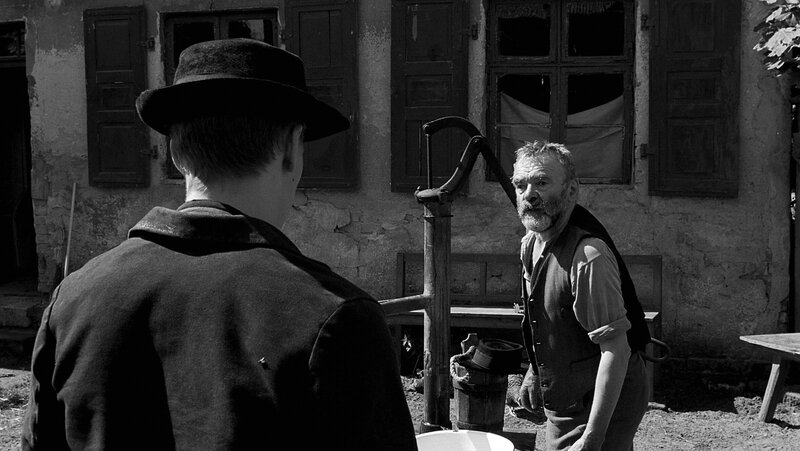 Seltsame Ereignisse erschüttern den Frieden einer kleinen protestantischen Gemeinde Norddeutschlands: Der Arzt verletzt sich bei einem ominösen Reitunfall, eine Arbeiterin stürzt zu Tode, ein kleiner Junge wird schwer misshandelt und eine Scheune angezündet. Haben die unerklärlichen Unfälle tatsächlich nichts miteinander zu tun? Unerklärliche Zwischenfälle erschüttern im Sommer 1913 das Idyll einer kleinen protestantischen Gemeinde im Norden Deutschlands. Zunächst fällt der Dorfarzt (Rainer Bock) vom Pferd und bricht sich dabei fast den Hals. Es ist die Rede von einem über den Weg gespannten Stolperdraht, der jedoch nicht mehr auffindbar ist. Danach stirbt die Frau eines Kleinbauern bei einem vermeidbaren Arbeitsunfall im Sägewerk. Schuld am fahrlässigen Umgang mit Sicherheitsvorkehrungen ist offenbar der adlige Gutsherr (Ulrich Tukur). Kurz darauf wird dessen kleiner Sohn schwer misshandelt, und die Scheune seines Hofs geht in Flammen auf. Ein Racheakt? Nachdem auch der Säugling des Gutsverwalters (Josef Bierbichler) nur knapp einem rätselhaften Tötungsversuch entgangen ist und der behinderte Sohn der Hebamme (Susanne Lothar) halb totgeschlagen wurde, zieht man die Polizei hinzu. Doch die Ermittler kehren unverrichteter Dinge wieder in die Stadt zurück. Das Böse ist unfassbar - und doch lebt es mitten unter den Menschen, ist Teil ihrer Gemeinschaft. Der junge, idealistische Dorflehrer (Christian Friedel) kommt den schockierenden Zusammenhängen schließlich auf die Spur. Doch ihm fehlen die Worte. Rückblickend, als alter Mann, klärt er Jahrzehnte später die mysteriösen Ereignisse auf. Das vielfach ausgezeichnete Historiendrama fängt mit seinen atemberaubenden Schwarz-Weiß-Bildern die Stimmung vor dem Ausbruch des Ersten Weltkriegs ein. Mit eisiger Präzision zeigt Regisseur Michael Haneke, wie die Stützen der Gesellschaft zusammenbrechen: ein Baron, der keine Souveränität mehr ausstrahlt, ein Arzt, der seine Tochter missbraucht, und ein Pfarrer, der die Seelen seiner Kinder mit protestantischen Dogmen vergiftet. Michael Haneke, der auch das Buch verfasste, überzeichnet diese Figuren nicht als Monster. Ulrich Tukur, Rainer Bock und Burghart Klaußner verkörpern gespenstische Vorboten jener Generation, die Faschismus und Holocaust ermöglichen wird. 670.000 Kinobesucher sahen diese "deutsche Kindergeschichte". Der Film wurde mit zahlreichen Preisen bedacht und als bester fremdsprachiger Film 2010 für den Oscar nominiert. Lehrer: Christian Friedel Eva: Leonie Benesch Baron: Ulrich Tukur Baronin: Ursina Lardi Sigi: Fion Mutert Hauslehrer: Michael Kranz Pfarrer: Burghart Klaußner Frau des Pfarrers: Steffi Kühnert Klara: Maria-Victoria Dragus Martin: Leonard Proxauf Adi: Levin Henning Margarete: Johanna Busse Annchen: Yuma Amecke...