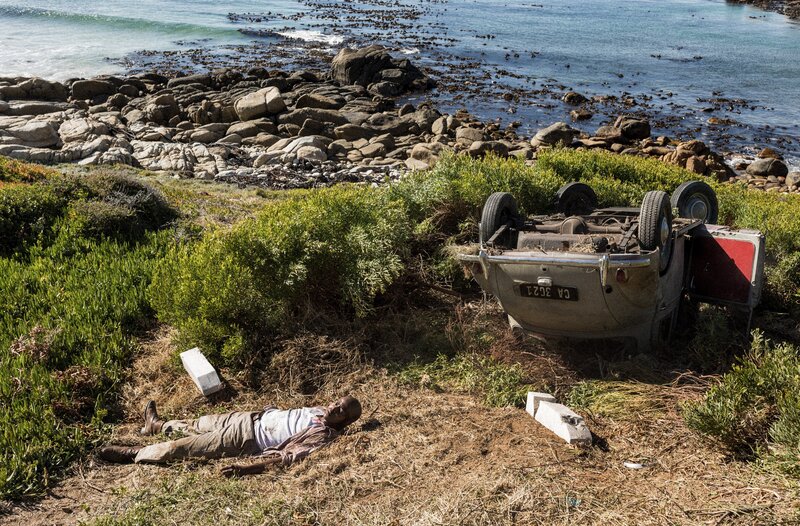 Nach dem Unfall: Hamilton (Loyiso MacDonald) ist verletzt.Bild: © Producers at Work/Mia-Film/Frizzi Kurkhaus / ORF / ARD Degeto
