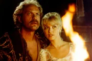 Der Landstreicher Griffig (Uwe Ochsenknecht, li.) will der Prinzessin Blanka (Tina Ruland, re.) bei der Suche nach dem gestohlenen Zauberbeutel helfen. Weiteres Bildmaterial finden Sie unter www.br-foto.de.Bild: © HR/DEGETO