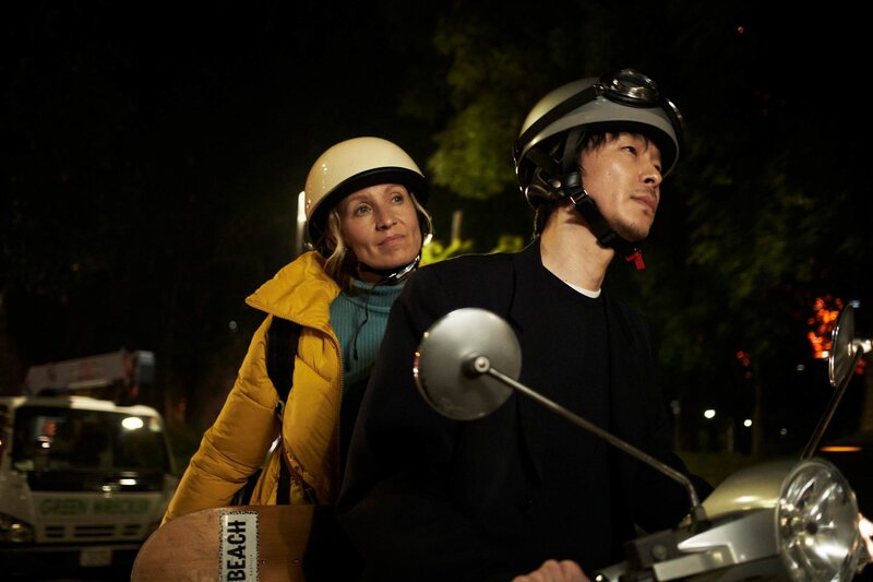 Thelma (Alexandra Lamy) reist nach Japan, um das Skateboard ihres im Koma liegenden Sohnes von einem berühmten Manga-Zeichner signieren zu lassen.Bild: © SND Films