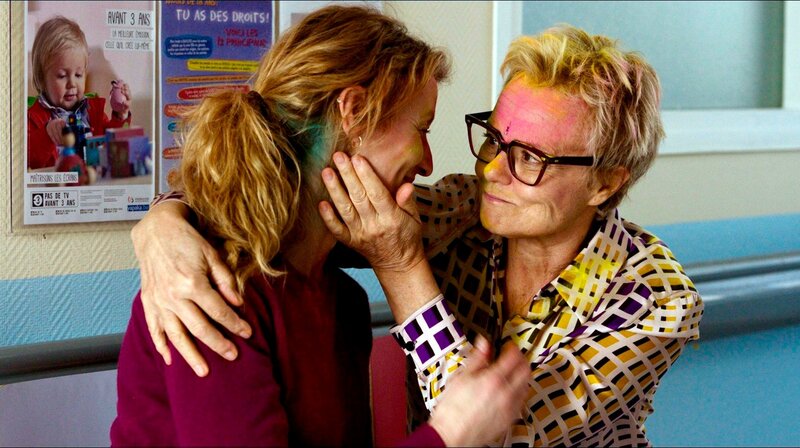 Die Geburtstagsfeier im Krankenhaus gestalten Thelma (Alexandra Lamy) und ihre Mutter Odette (Muriel Robin) wie ein indisches Holi-Fest.Bild: © MDR/ÉDITIONS CALMANN-LÉVY