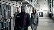 Der sadistische Wächter Ulrich (Jason Clarke, l.) und seine Chefin Warden Hennessey (Joan Allen, r.) führen den Gefangenen Jensen Ames alias Frankenstein (Jason Statham, M.) zu seinem Wagen. Um die Quoten zu erhöhen, haben sich die beiden etwas ganz Besonderes ausgedacht ...