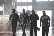 Wollen keine Marionetten in dem regellosen Death Race sein: Lists (Fred Koehler, l.), Jensen Ames (Jason Statham, 2.v.l.), Coach (Ian McShane, 2.v.r.) und Gunner (Jacob Vargas, r.) ...
