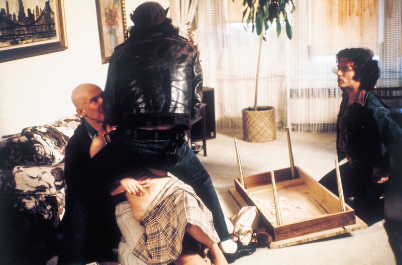Pauls Frau Joanna und seine Tochter Carol werden in ihrer Wohnung von drei jungen Kriminellen (Gregory Rozakis, rechts, Christopher Logan, links) schwer misshandelt. Carol wird von einem der Täter (Jeff Goldblum, Mitte) zum Oralverkehr gezwungen.