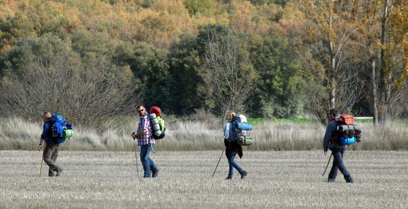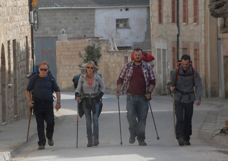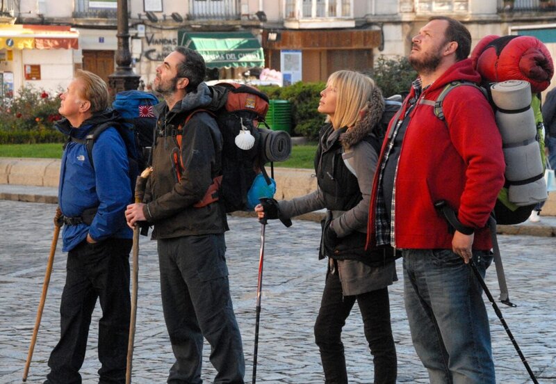 Der Einzelgänger trifft auf skurrile Mitpilger, die ebenfalls ihr Päckchen zu tragen haben - von links: Joost, Jack, Tom, und Sarah(Yorick Van Wageningen, James Nesbitt, Martin Sheen und Deborah Kara Unger).