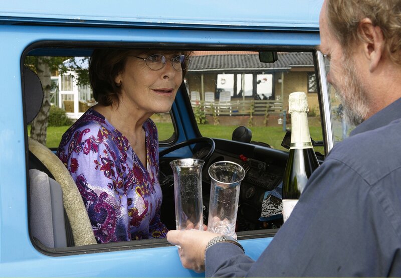 Konrad (Peter Haber) will mit Anne (Thekla Carola Wied) auf die geplante Reise anstoßen.Bild: © ARD Degeto/Sandra Hoever