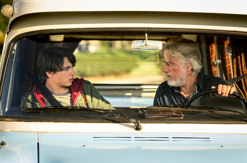 Der Alte und die Nervensäge: Wilhelm Schürmann (Jürgen Prochnow) mit dem Ausreißer Felix (Marinus Hohmann, li.) auf Tour.Bild: © ARD Degeto/Martin Rottenkolber