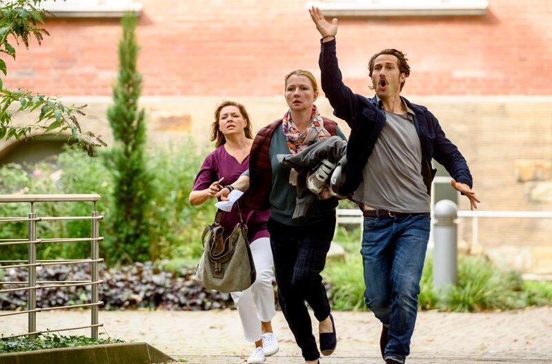 Martin (David Rott), Ines (Karolina Lodyga, li.) und Bettina (Katja Studt) nehmen die Verfolgung auf.Bild: © ARD Degeto/Martin Rottenkolber