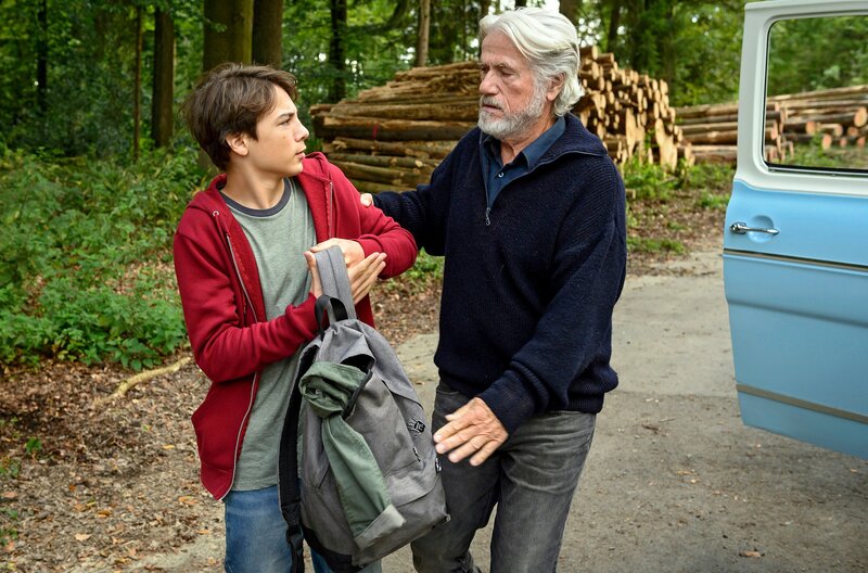 Wilhelm Schürmann (Jürgen Prochnow) und Felix (Marinus Hohmann, li.) auf Abenteuertour.Bild: © ARD Degeto/Martin Rottenkolber