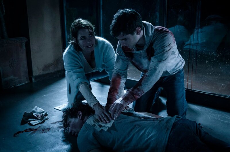Miki (Aaron Hilmer) und seine Mutter Nikola (Anja Kling) warten auf Hilfe für den schwer verletzten Klaus (Gregor Bloéb, liegend).Bild: © ARD Degeto/Stephan Rabold / ARD Degeto/Programmplanung und P