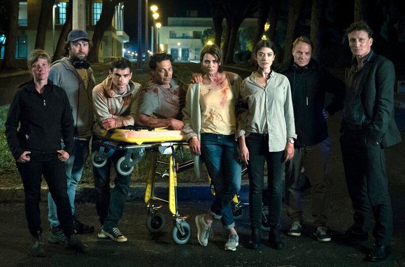 Von links nach rechts: Katharina Bühler (Kamera), Florian Baxmeyer (Regie), Aaron Hilmer (Miki Witt), Gregor Bloéb (Klaus Witt), Anja Kling (Nikola Walter), Anna Bederke (Sarah Brandt), Oliver Schündler (Produzent Lucky Bird Pictures) und Oliver Masucci (Mario Lobeck)Bild: © ARD Degeto/Stephan Rabold / ARD Degeto/Programmplanung und P